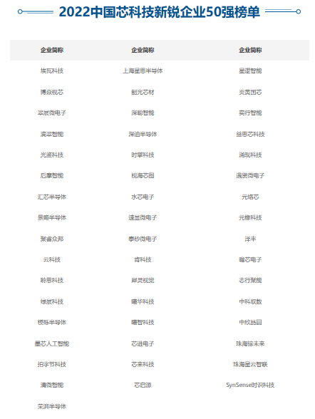 附:畢馬威發(fā)布2022中國芯片新銳50強榜單 完整名單(排名不分先后)